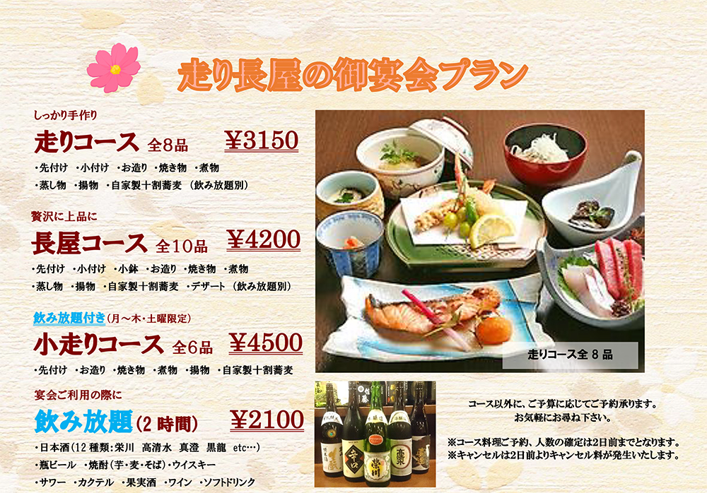 蕎麦・にぎり飯・酒処 走り長屋のお知らせ紹介